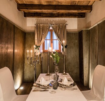 A feast for the senses awaits you in the Josephi parlour. Bring your appetite and enjoy a romantic gourmet dinner for two. Candlelight, selected wines, old walls and wood panelling from past centuries create an ambience that connects. An experience for special occasions and moments that stay with you. Here, enjoyment becomes a memory – quiet, intense and full of depth.