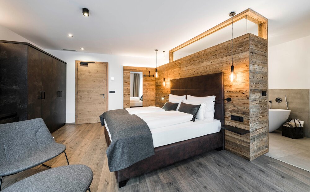 Alpine clarity meets soothing tranquillity here. 300-year-old wood, a modern ambience and plenty of light create space to take a deep breath. The free-standing bathtub invites you to let go – your private retreat for relaxing nights and conscious moments with a view of the Vinschger Sonnenberg and the apple orchards.