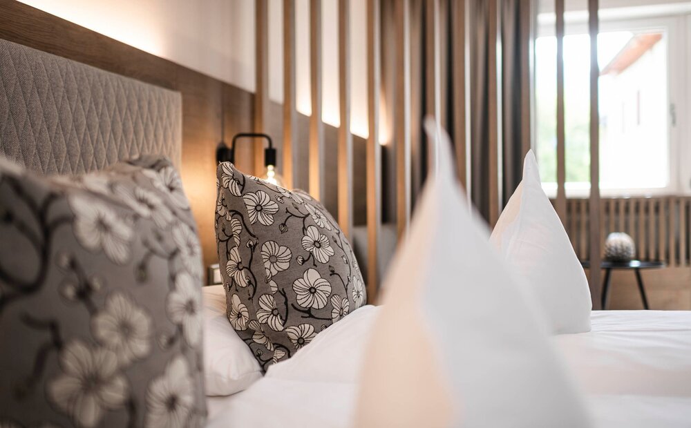 When the sky outside bathes everything in warm red, your quiet time begins inside. The Abendrot room thrives on light and atmosphere – soft, calm, cosy. Depending on the category, with an open walk-in shower, which gives the room a special lightness. For days that linger on.