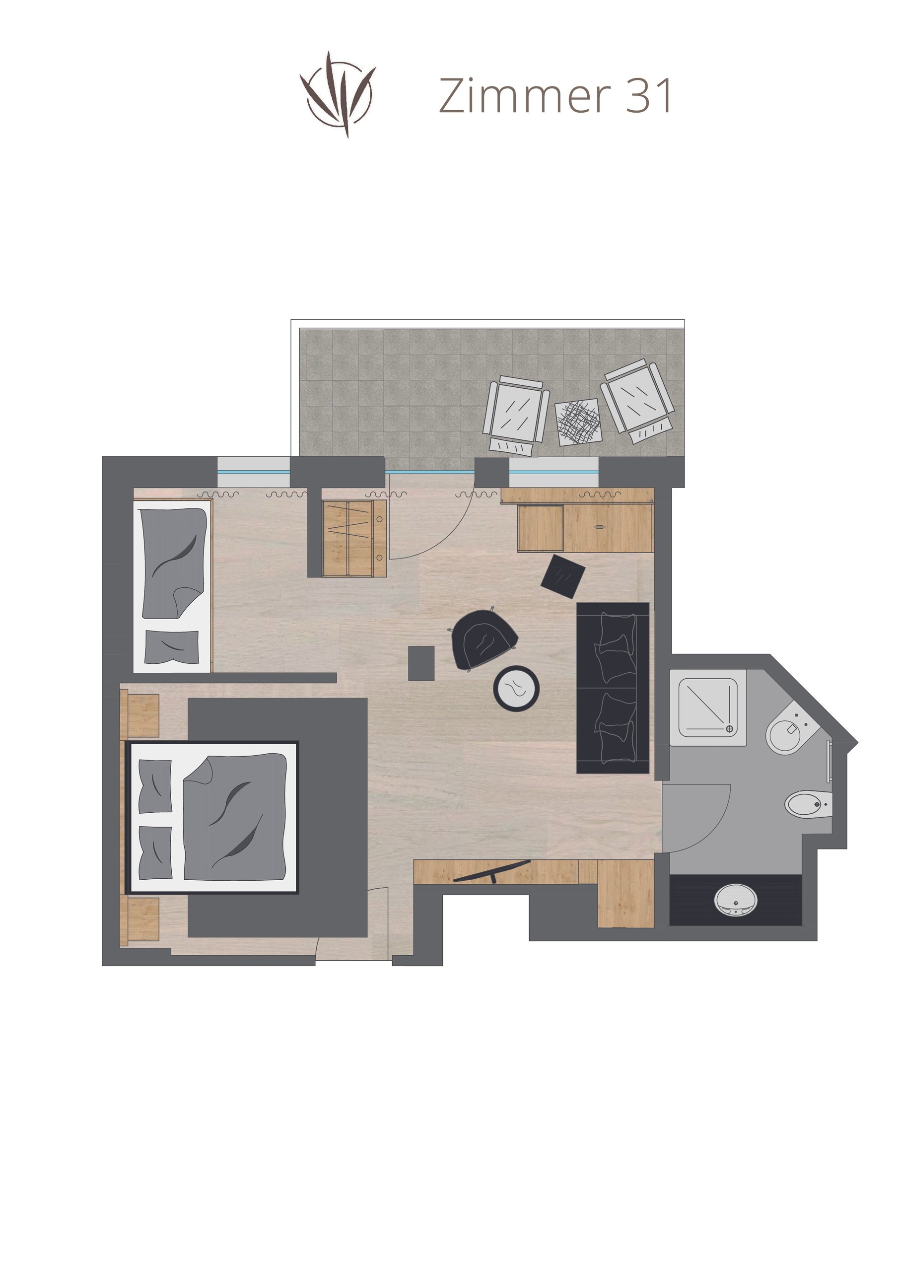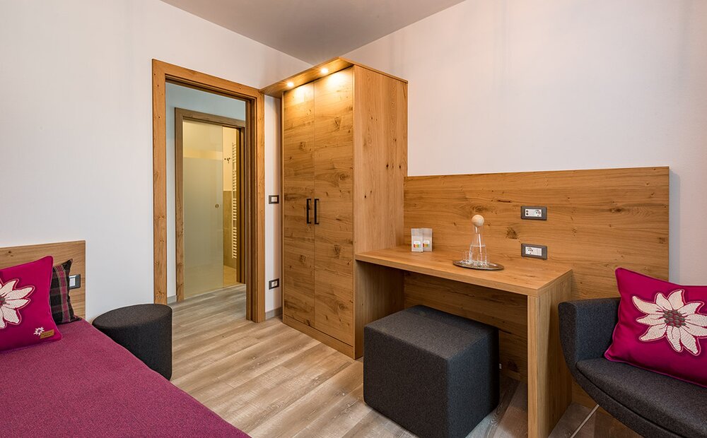 Alpine lifestyle meets timeless clarity. Light oak wood, warm colours and natural materials characterise the St. Martin Deluxe room. The separate children's room creates space for retreat and shared experiences at the same time. Flooded with light, it becomes a harmonious place for conscious family time.